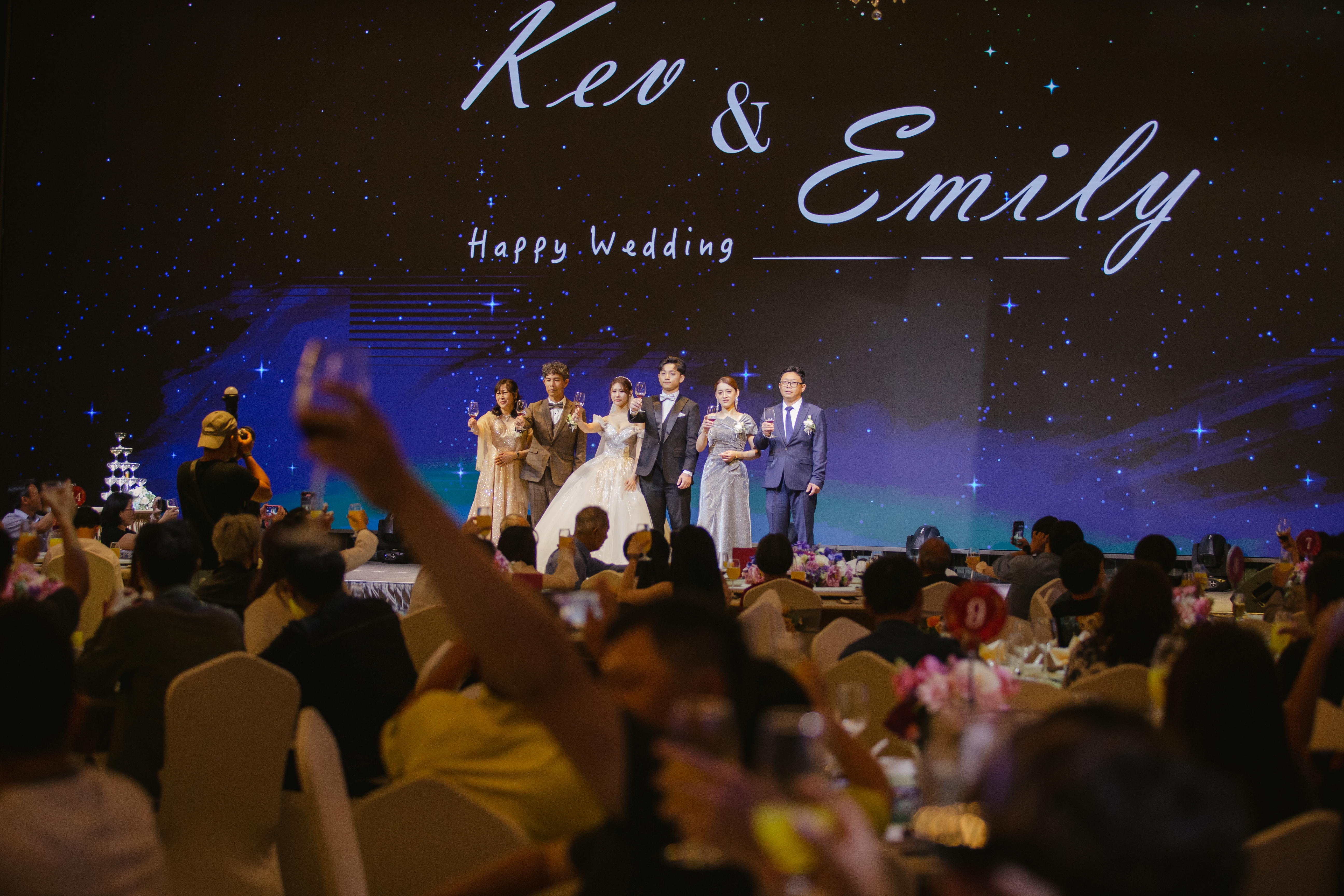 324坪「星光盛宴大殿」專屬全場,673 吋 8K LED 巨幕、劇院級聲光舞台、獨立專屬宴客動線與服務備餐中樞,將誓言的每一秒都精準定格;20 間私宴包廂與太白酒窖,延伸迎賓、茶酒與家族合影的精緻儀式。從菜色、酒單、燈光到流程,每一個細節都以「只為此刻」的高標準打造。